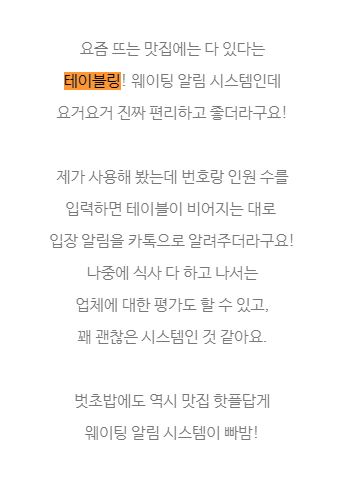 요즘 저희 테이블링 대기 시스템을 이용해서 식사를 경험하신 고객님들이 “테이블링이 있네? 맛집인가 보다~”라고 생각하신다고 합니다!