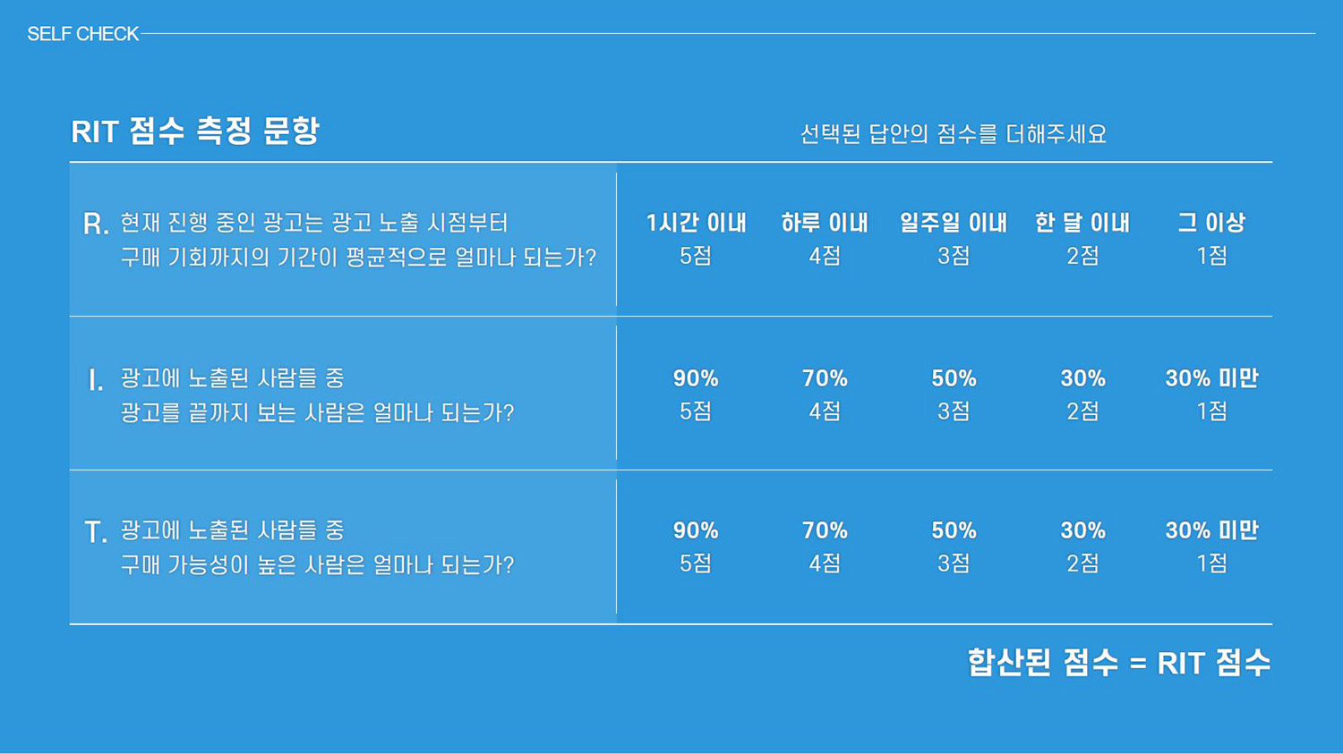 여러분 광고의 RIT는 안녕하십니까?