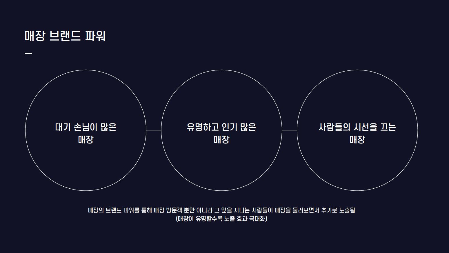 또한 매장의 브랜드 파워를 통해 매장 방문객뿐만 아니라 그 앞을 지나는 사람들에게도 추가로 노출되니 광고가 송출되는 매장이 유명할수록 노출 효과는 더욱 극대화되겠죠?