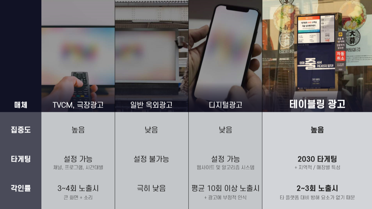 아래 이미지를 통해 타 매체와 테이블링 웨이팅광고를 직접 비교해보세요.
