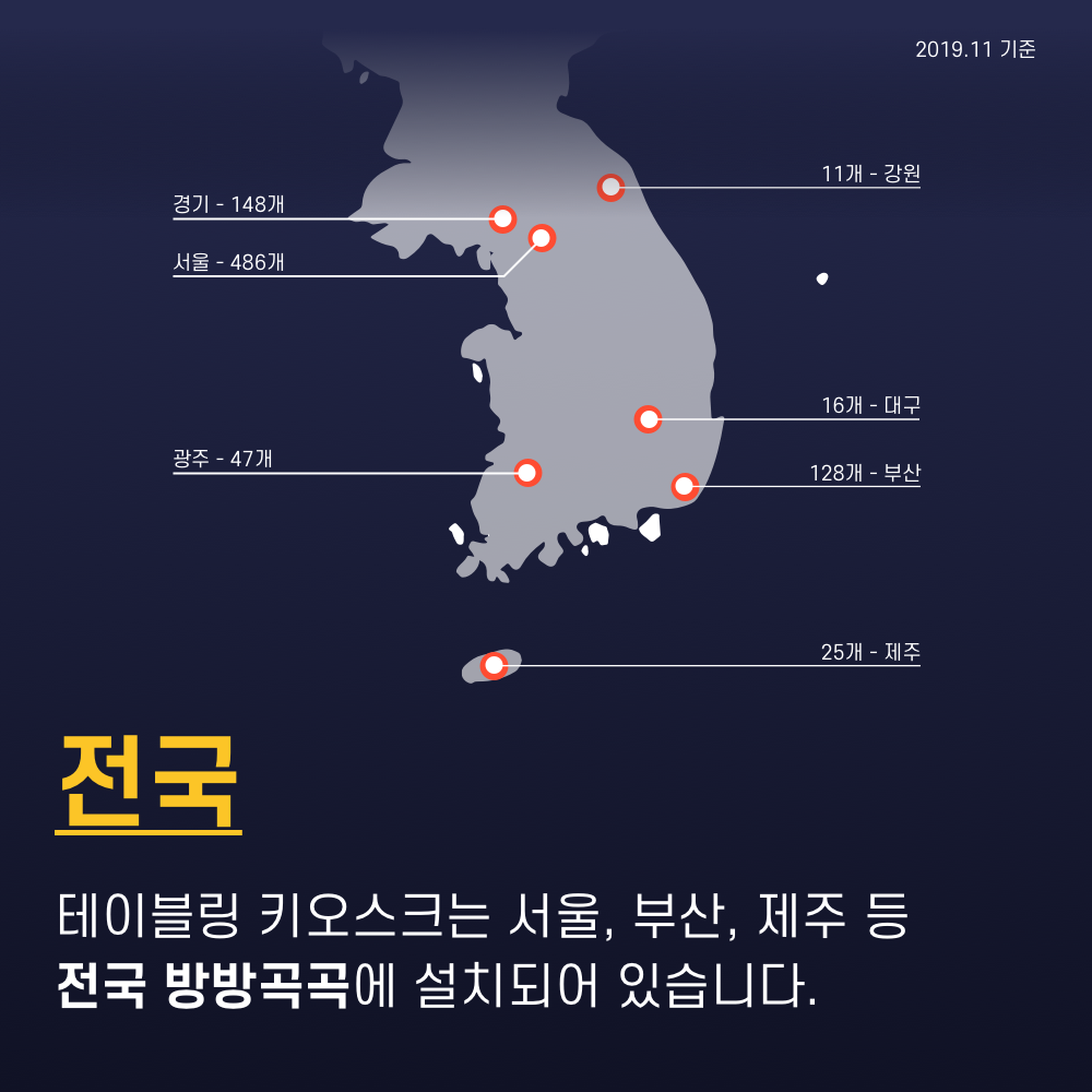 테이블링 광고플랫폼, 웨이팅광고는 서울, 부산, 제주 등 전국 각 지역에 약 1000여 개의 제휴 매장이 있으며, 광고 또한 최대 1000개의 매장에서 송출 가능합니다. (2019년 11월 기준)