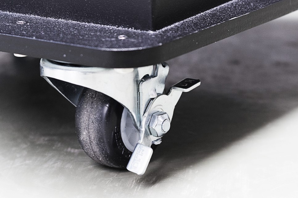 고객이 밀거나 부딪쳐서 넘어가지 않도록 바퀴로 고정할 수 있도록 제작되었습니다.