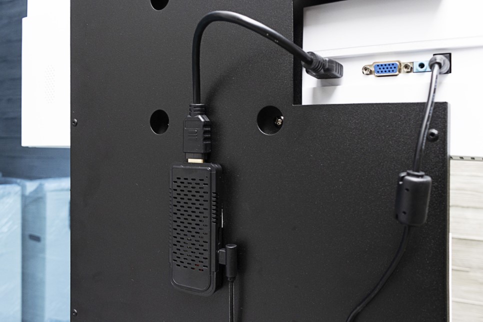 화면을 송출해야 하므로 모니터 뒤에는 작은 PC 장치가 부착됩니다.