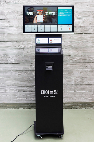 대기 고객 입력 태블릿이 키오스크 본체에 함께 내장되어 있습니다.