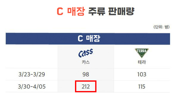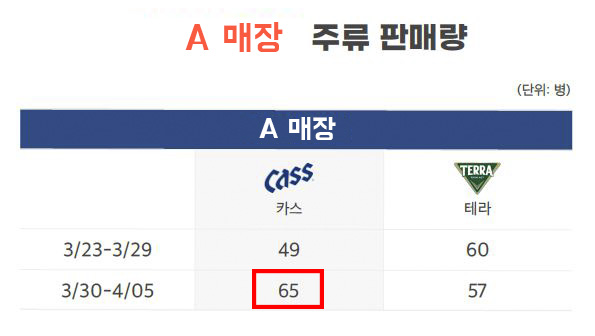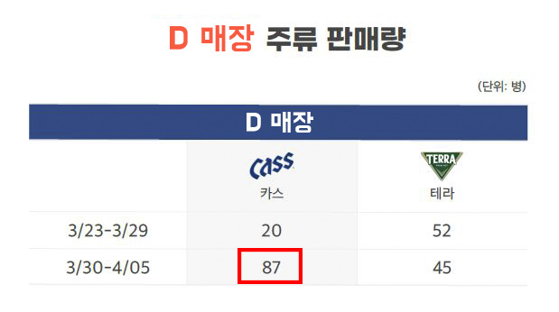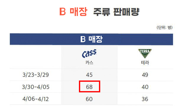 테이블링 제휴 매장 4곳 모두 실제 송출되는 광고(카스) 제품이 매장에서 구매로 이어졌으며, 광고 제품의 점유율 또한 상승한 것을 확인할 수 있었습니다.