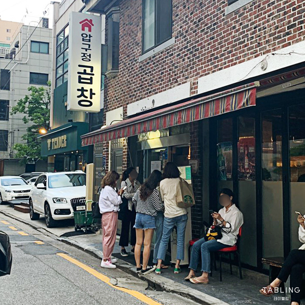 앞서 소개해드린 '압구정곱창' 매장도 골목길에 위치해 대기장소가 협소한 편인데요,